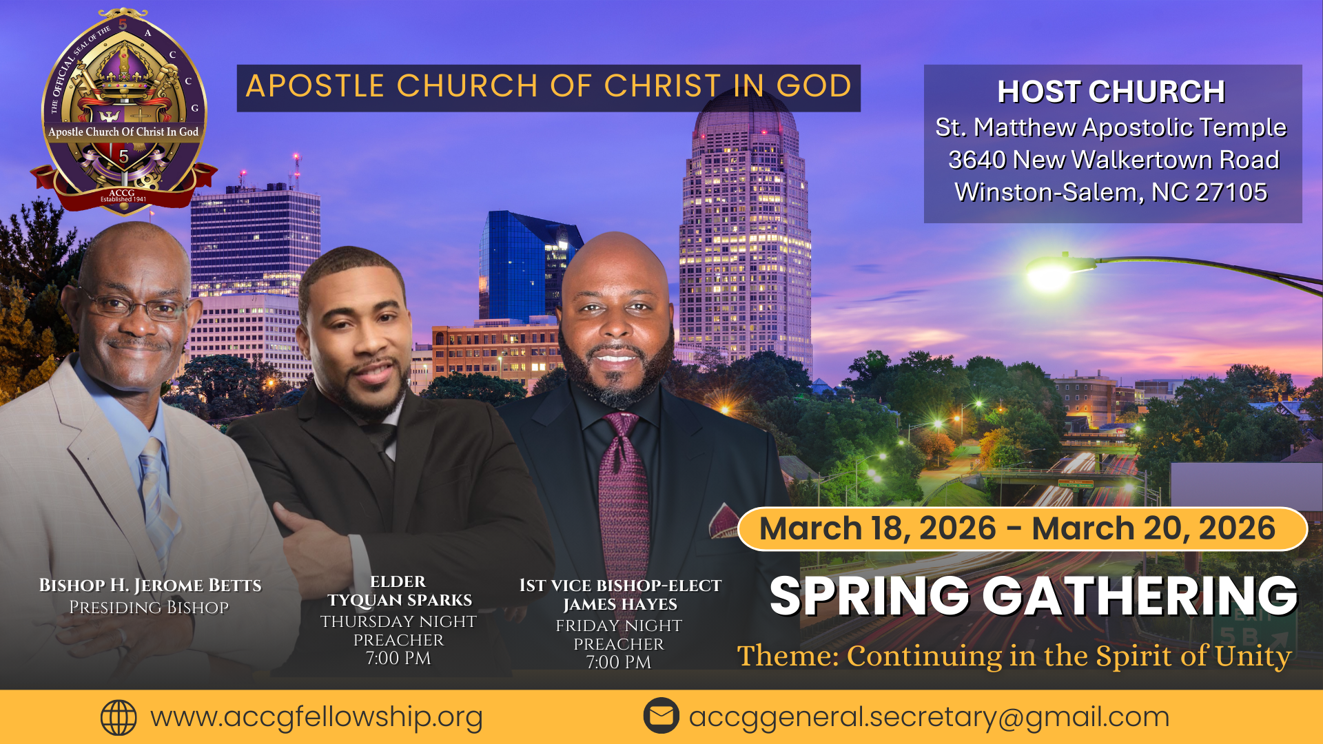 Join us March 18–20, 2026, at St. Matthew Apostolic Temple in Winston-Salem, NC, for a powerful time of fellowship, worship, and unity.