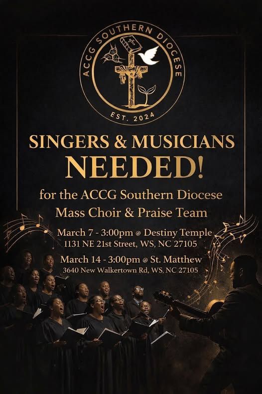 Join us March 18–20, 2026 at St. Matthew Apostolic Temple in Winston-Salem, NC, for a powerful time of fellowship, worship, and unity.